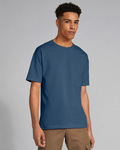 Classic fit, Uni-sex, 203g/m2, 100% Cotton (Fibre content varies by colour), 18/1, Set-in rib collar with shoulder-to-shoulder taping, Double-needle sleeve and bottom hems, Tear away label